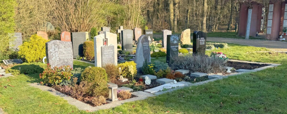 - Die Position der Grabstätte auf dem Friedhof kann nicht gewählt werden. Die Belegung erfolgt im jeweiligen Grabfeld der Reihe nach.