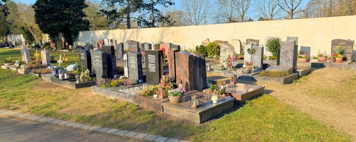 - Die Position der Grabstätte auf dem Friedhof kann nicht gewählt werden. Die Belegung erfolgt im jeweiligen Grabfeld der Reihe nach.